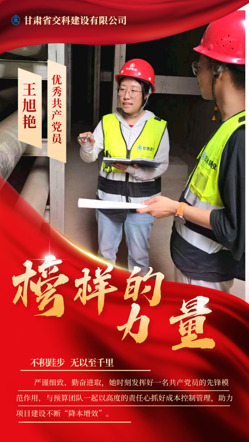 王旭艳,中共党员,现从事一公司项目预算员岗位工作。工作以来,她始终保持着高度的责任心和工作热情,把“做事先做人、万事勤为先”作为自己的行为标准,坚持在“干中学、学中干”,迅速从一名预算工作“小白”成长为专职干事,在交科公司工会2023年职工劳动技能竞赛预算员技能竞赛中获得第一名。